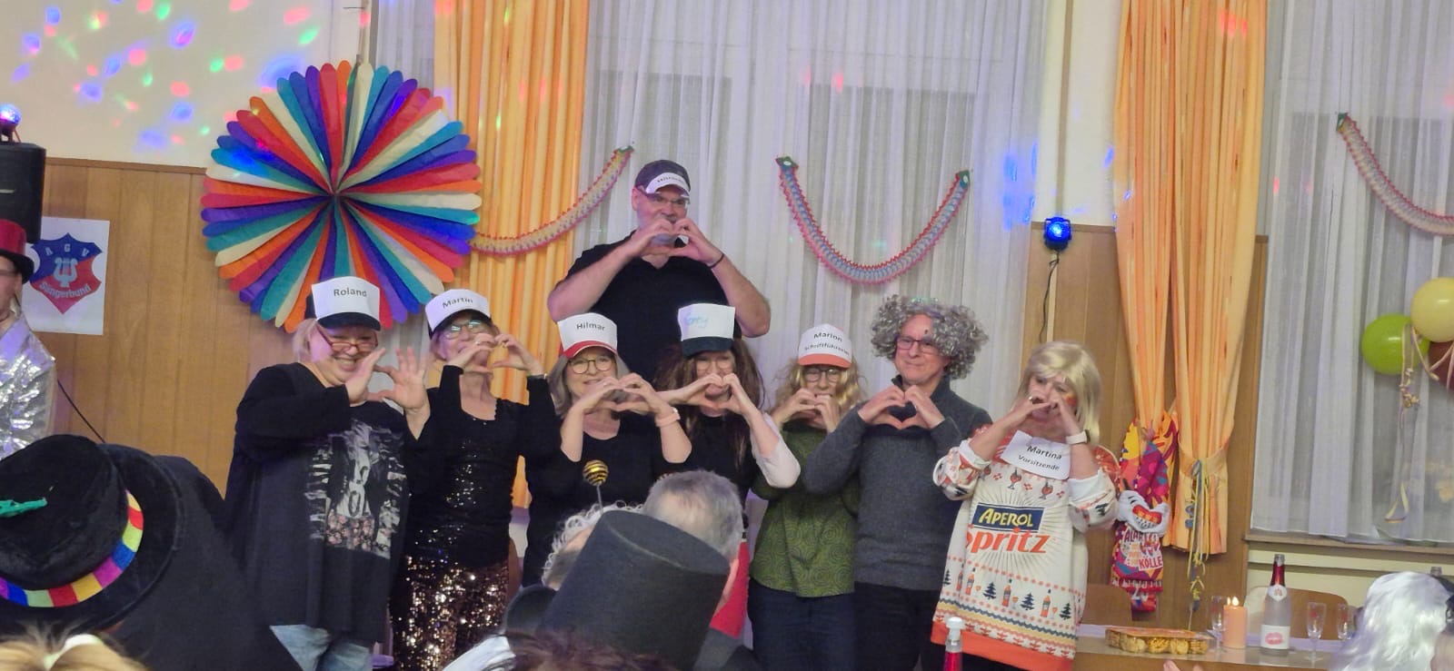 Marion eröffnete das Programm mit ihrer Bütt und nahm Chor, Männer, Sandhausen und gleich ganz Deutschland aufs Korn. Nicht jeder trifft immer den richtigen Ton – aber Hauptsache, man singt und feiert gemeinsam. Treffender kann man unseren Chor wohl kaum beschreiben. Das Publikum fühlte sich bestens getroffen und lachte herzhaft.