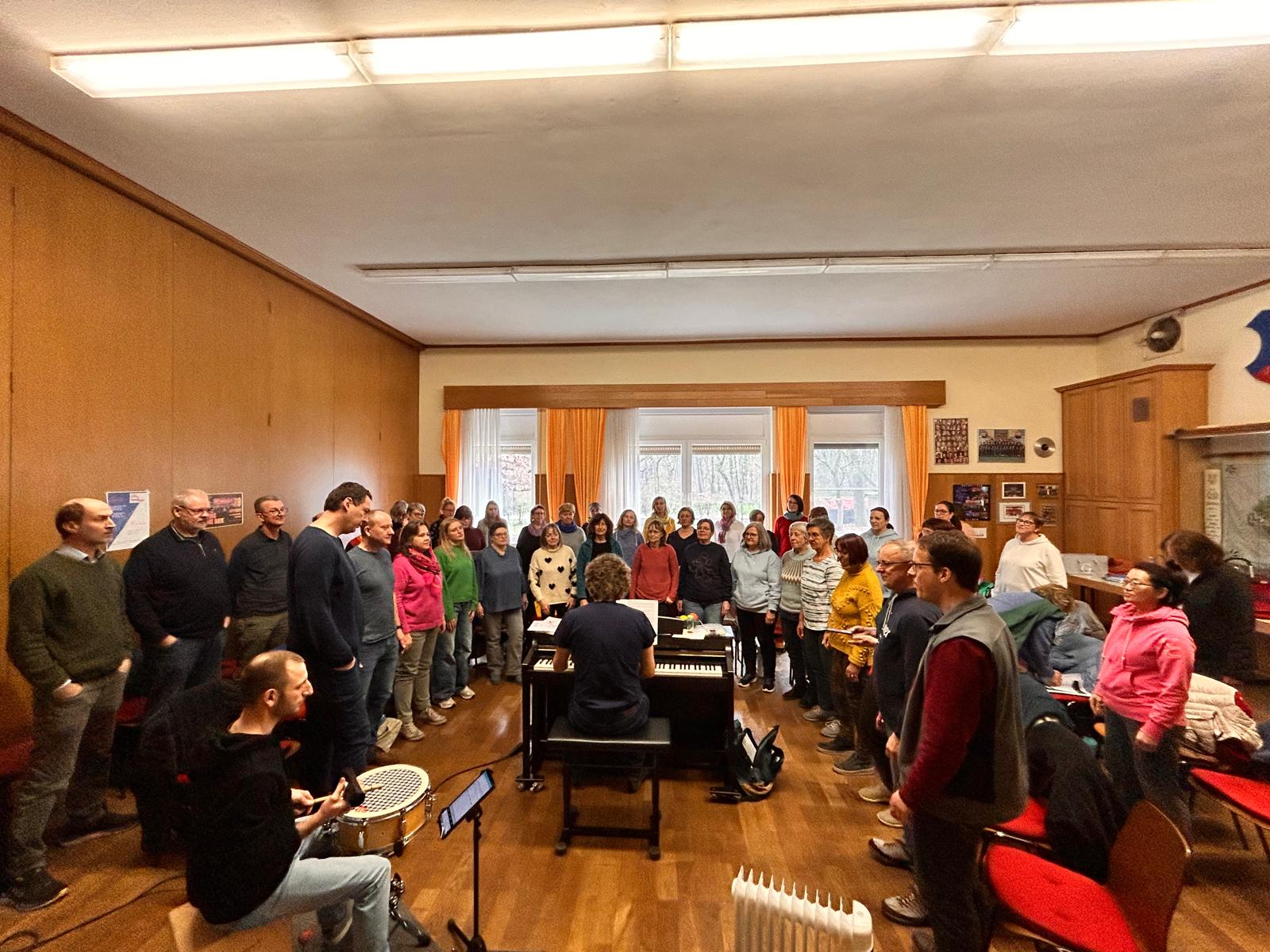 Viele weitere Stücke wurden intensiv erarbeitet: Ausdruck in When You Believe, rhythmische Akzente bei Joshua Fit the Battle, feine Dynamik in Wunder geschehen oder das sichere Fundament bei Bridge over Troubled Water. Besonders stark präsentierten sich die Frauen bei einer eigenen Probe. Zwischendurch sorgten humorvolle Kommentare unseres Chorleiters für gute Laune – etwa als er scherzte, dass man das versteckte „S“ bei „Scarborough“ trotzdem noch hören könne.